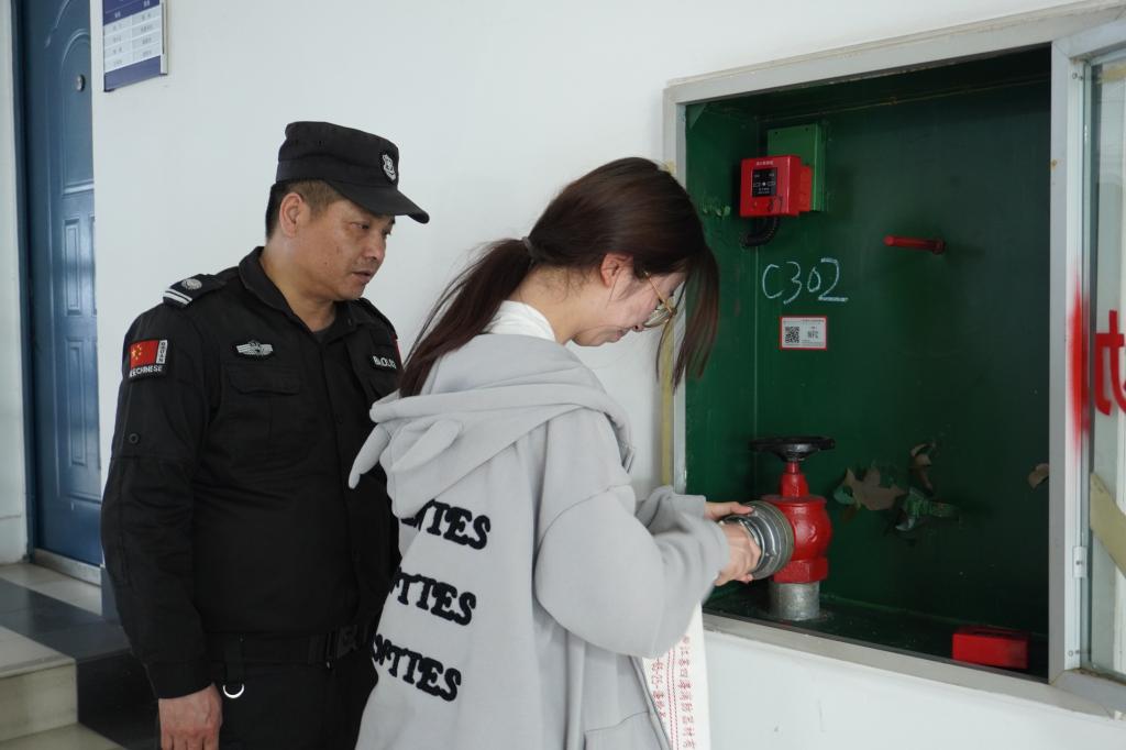 随后,燕老师进行了一场生动而实用的消防器材使用演练。他详细介绍了消防器材的基本使用方法和注意事项。为了让同学们更好地理解和掌握这些技能,燕老师进行了模拟操作,演示了如何快速组装消防水管等关键步骤。在演示过程中,老师不断强调每一个动作的准确性和重要性,还邀请同学们上前体验,使同学们对消防器材的使用有了更加直观的认识。