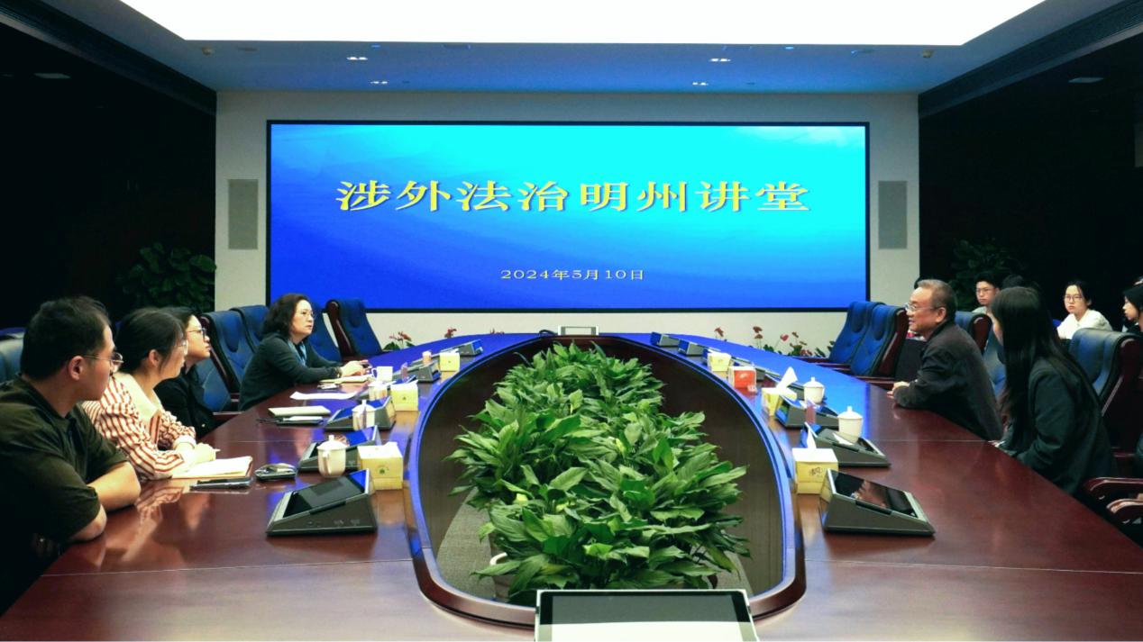 旁听结束后,同学们一行人来到会议室参加涉外法治明州讲堂活动,宁波市中级人民法院国际商事法庭马洪庭长、毛坚儿副庭长、邓梦甜副庭长和、吴文雯法官、黄美茹法官助理等参与出席。活动伊始,金彭年教授简要总结了旁听的庭审案子,鼓励同学们努力学习法学知识,积极参与校内的法学相关活动和校外的实习实践活动。随后,毛庭长根据自己的庭审经验告诫同学们要扎实法律的基本功,锻炼出透过现象看本质的能力,把自己培养成为一个专业的法律人才。毛庭长还提到,学习法律需要从纵深的方面去思考问题并举一反三、融会贯通。法律不单是一门学科,更是一种人生,“英雄不问出处”,不断努力学习、积极实践以及自我完善可以帮助大家取得更好的成就。