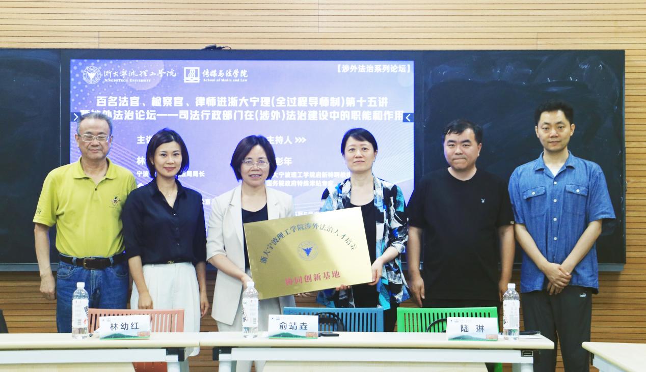 为引导法学学子明确职业生涯规划,加强校外实践能力,传媒与法学院于6月5日下午15:30在智慧教室NB118举行百名法官、检察官、律师进浙大宁理第十五讲暨涉外法治论坛——司法行政部门在(涉外)法治建设中的职能和作用。本次活动有幸邀请到宁波市江北区司法局局长林幼红、宁波市江北区司法局办公室主任俞靖垚、浙江合创律师事务所合伙人陆琳作为主讲人,浙大宁波理工学院启新特聘教授金彭年、传媒与法学院副院长韩缨、法学专业教师张浩为与谈人,2022级涉外法治班学员共同参与。