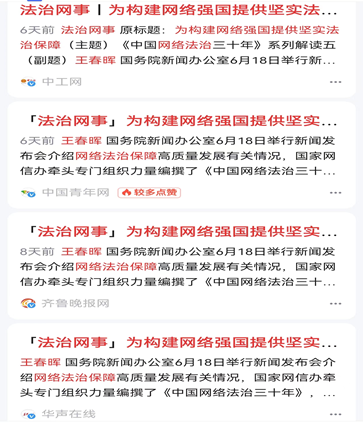 近日,中国科协决策咨询首席专家、工信息部信息通信经济专家委员会委员、中国行为法学会学术委员会副主任兼网络与数据法学研究部主任、中国法学会网络与信息法学研究会常务理事、网络空间治理与数字经济(长三角)研究基地主任兼首席专家、我校启新学者讲座教授王春晖教授受邀在法治日报-法治网发表《为构建网络强国提供坚实法治保障》,被中央网信办全网推送,中央主要新闻网站和上百家地方新闻网站对该文进行了转载,引发广泛关注。