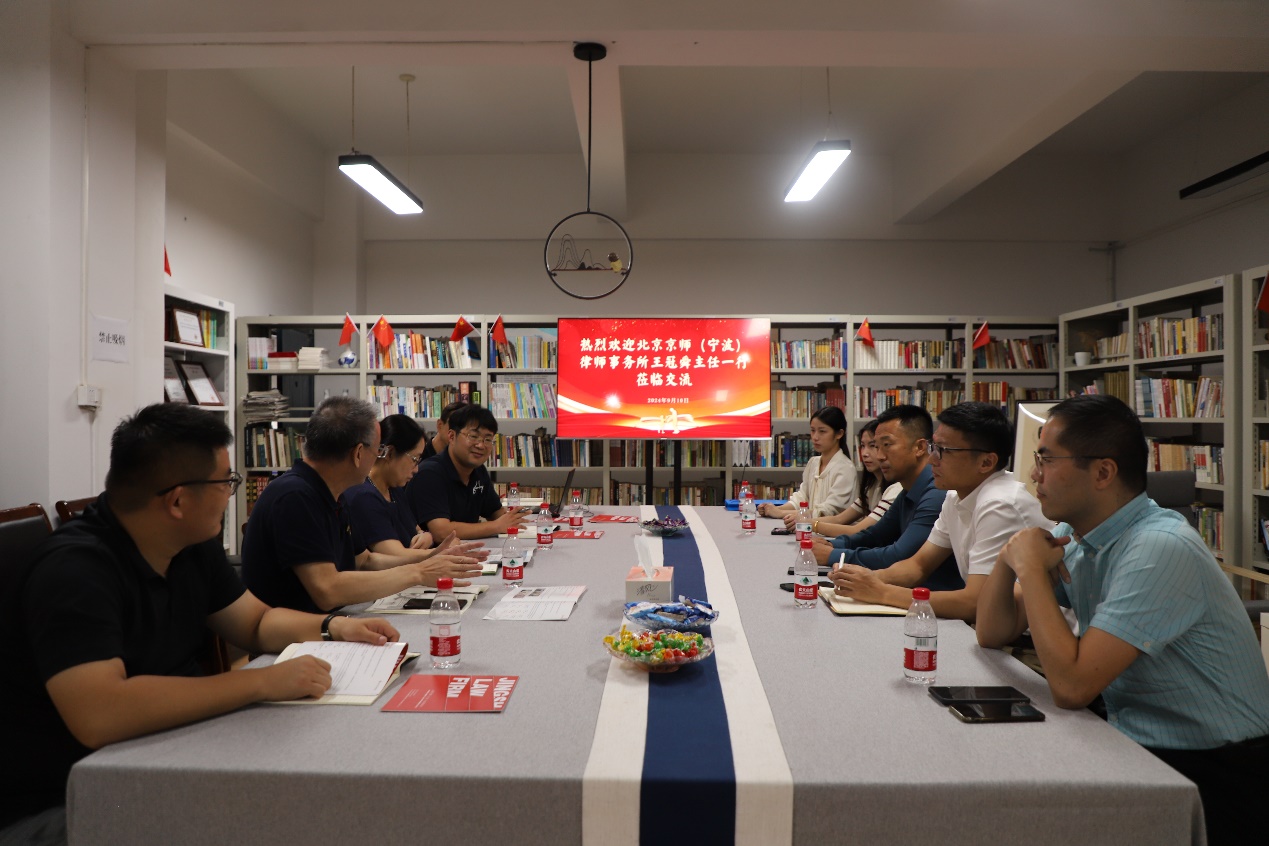 9月10日,北京京师(宁波)律师事务所主任王冠舜一行来我院座谈交流,传媒与法学院党委书记朱小红、党委副书记胡鹿鸣、我校启新特聘教授金彭年、宁波法治化营商环境研究院副院长卢剑峰副教授及部分青年教师参加座谈。