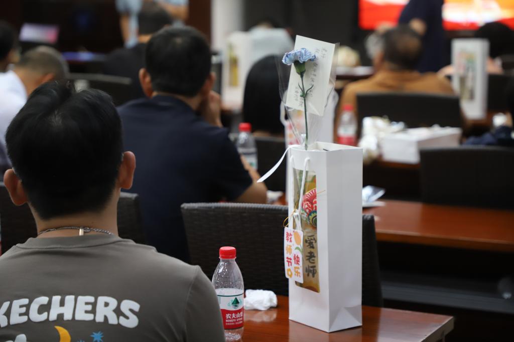 大会当天恰逢第四十个教师节,对于全体老师有着特殊的意义,传媒与法学院学生特地为老师们准备了节日别样的祝福——一份满怀对老师身体康健祝愿的礼物和写满祝福的贺卡。