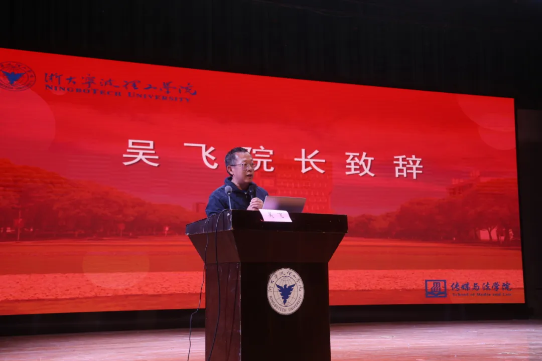 大会开始前,会场内奏响国歌,全体师生起立共唱国歌。大会伊始,吴飞院长发表致辞,他首先表达了对2024级新同学的欢迎与祝福。吴院长紧扣“价值”这个关键词展开讲述。他强调,同学们来大学是为了在这个信息爆炸的时代找到自己的价值,同学们需要找准定位,明确奋斗的方向。吴飞院长还建议同学们努力将自己培养一个身心健康,真实真诚,自立自觉,有创造力和想象力的人,向优秀的校友学习。他激励同学们在未来的四年中不懈拼搏,勇夺佳绩。