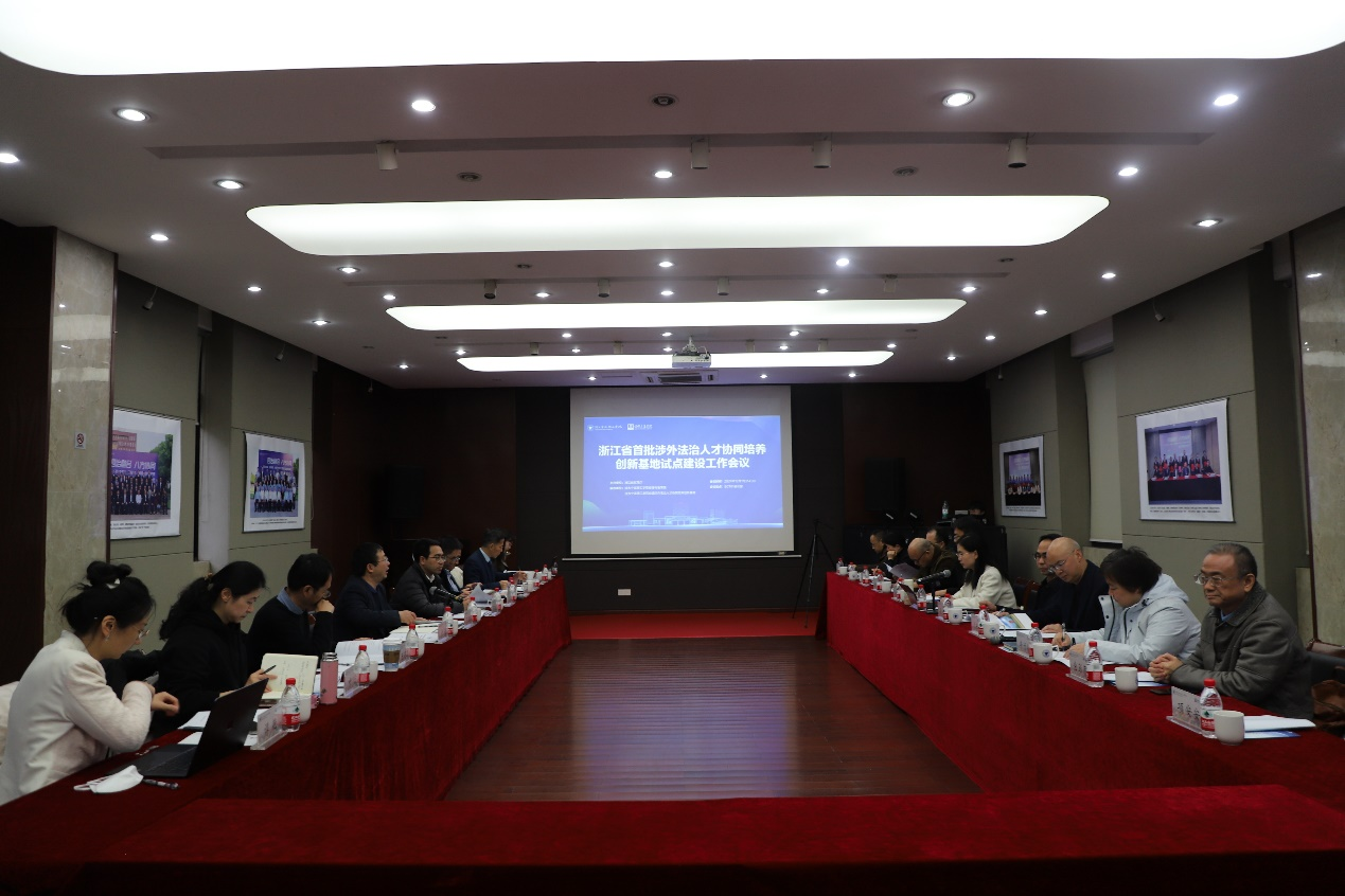 12月11日,浙江省首批涉外法治人才协同培养创新基地试点建设工作会议在浙大宁波理工学院召开。省教育厅高教处二级调研员王国银、四级调研员卢燕,省委依法治省办秘书处副处长陈飞乐和我校副校长张荣祥出席会议,浙江大学等14所本科高校省级涉外法治人才协同培养创新基地负责人参会。