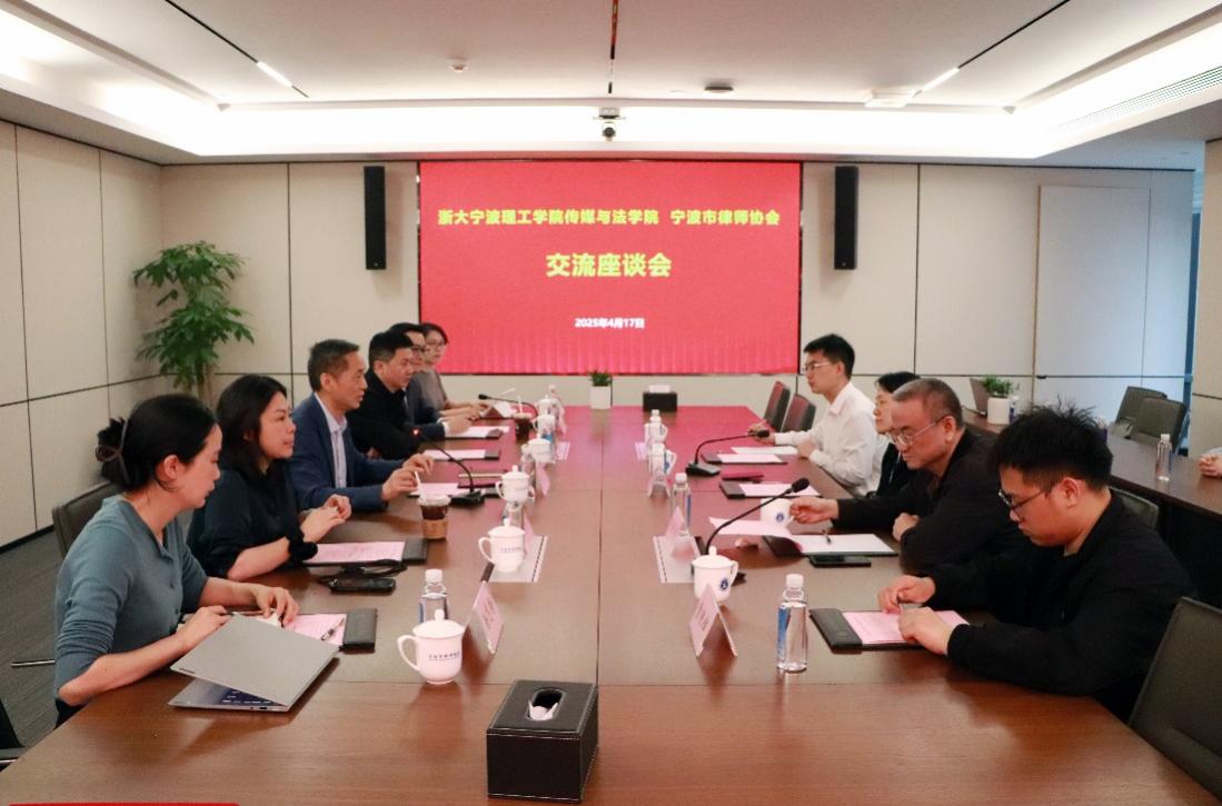 2025年4月17日下午,传媒与法学院副院长韩缨、启新特聘教授金彭年、法律系教师刘敏博士、童银辉老师及涉外法治卓越班部分同学一行走访宁波市律师协会。市律师协会会长徐立华、市律师协会秘书长朱益峰、市律师协会法律顾问专业委主任黄靖靖、市律师协会青年律师与对外交流委员会委员嵇思涛、市律师协会秘书处业务部主任徐志静、市律师协会秘书处纪律与维权部主任周君等参加座谈。