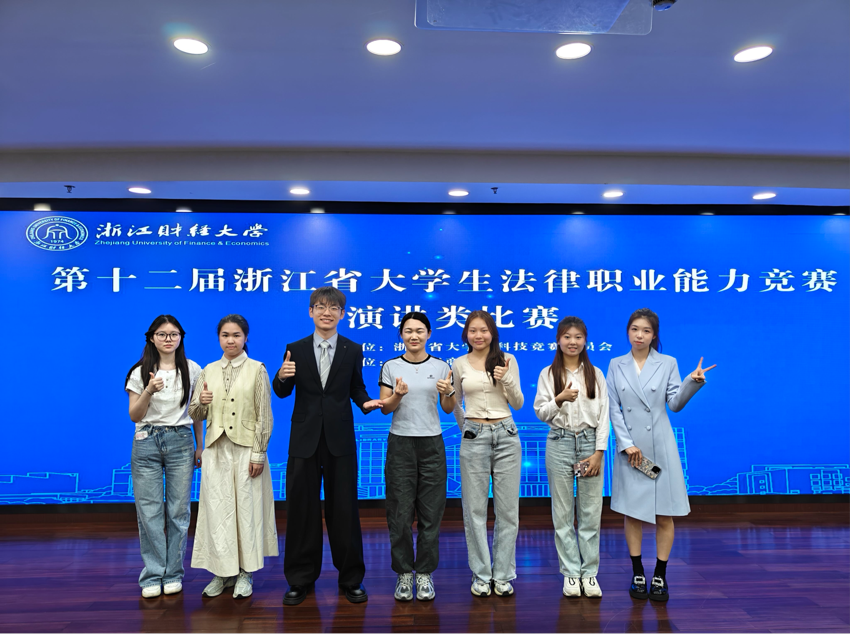 4月19日,传媒与法学院泮施彤、沈颂美、田一原、陆诗享、李子璇、陈哲昊、张檬等七名学生在邢洁老师的带领下,赴浙江财经大学参加第十二届浙江省大学生法律职业能力竞赛演讲类比赛决赛。