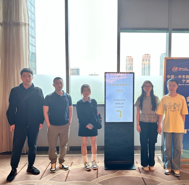 为培育国际商事法律专业力量、提升我院法学学子对跨境法律实务的认知,2025年5月20日,传媒与法学院李敬昌老师带领涉外法治卓越人才班学员陆诗享、孙肖文、李东潮、余霏晗参加了由宁波市贸促会、宁波市中级人民法院主办的涉外商事调解研讨培训会活动。本次活动在宁波泛太平洋大酒店举行,此次活动吸引了众多法学专业学生及法律实务工作者参与,旨在提升参与者对涉外商事调解知识的认知与实践能力,培养适应新时代需求的涉外法治专业人才。