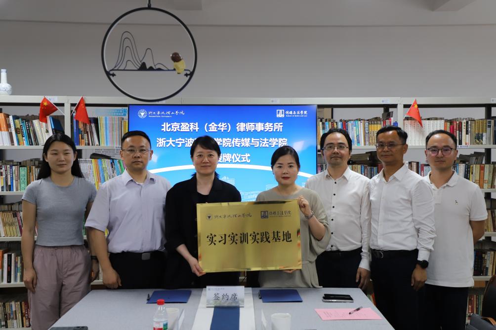 5月23日下午,传媒与法学院与北京盈科(金华)律师事务所共建教学实践基地签约授牌仪式顺利举行。传媒与法学院副院长韩缨、法律系主任董玉鹏、教师代表邢洁博士、辅导员童银辉,北京盈科(金华)律师事务所执行主任吕小白、监事会主任应旭升、监事会常务副主任童正辉、管委会委员葛腾飞、行政总监穆俊伟,以及部分金华籍在校法科生参与本次活动。