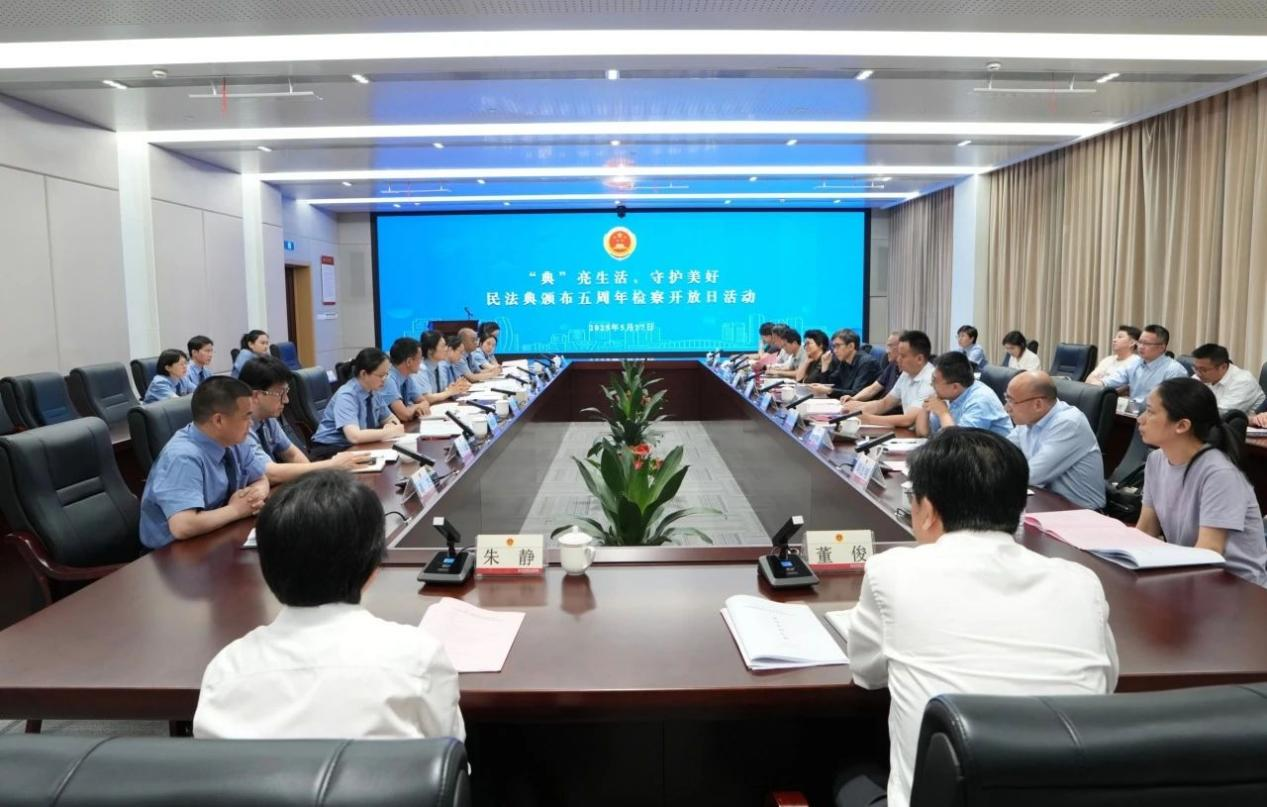 为深入学习贯彻习近平法治思想,庆祝《中华人民共和国民法典》颁布五周年,2025年5月27日,宁波市人民检察院举办了以“‘典’亮生活 守护美好”为主题的开放日活动,集中展示检察机关在推动民法典实施、保障民生权益中的积极作为。浙大宁波理工学院传媒与法学院金彭年教授、陈煜博士应邀出席此次活动。宁波市人大代表、市政协委员、市中级人民法院、市司法局、市律师协会、市破产管理人协会、宁波大学、浙江万里学院等单位代表也参加了此次活动,体现了全社会对法治建设和民法典实施成果的广泛关注。本次开放日活动内容丰富、形式多样,通过现场参观、典型案例分享、主题座谈等方式,展现了民法典实施五年来宁波市检察院在民事行政公益诉讼、未成年人保护、人格权维护等领域的实际成效,彰显了法律监督在社会治理中的重要作用。