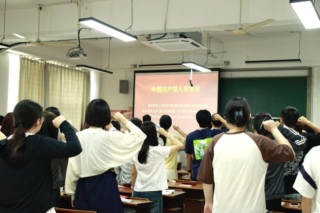 会议以庄重的政治生日仪式拉开帷幕。顾琼莹、邬旭东两位同志向党员代表赠送理论学习书籍及毕业生党员纪念卡,共同庆祝政治生日,寄语毕业生党员始终牢记入党初心,持续加强理论武装。随后,在邬旭东同志的带领下,全体党员庄严列队,高举右拳重温入党誓词。“我志愿加入中国共产党……”铿锵有力的誓言在会场内回响,彰显着毕业生党员对党的忠诚与为党和人民事业奋斗的坚定决心。