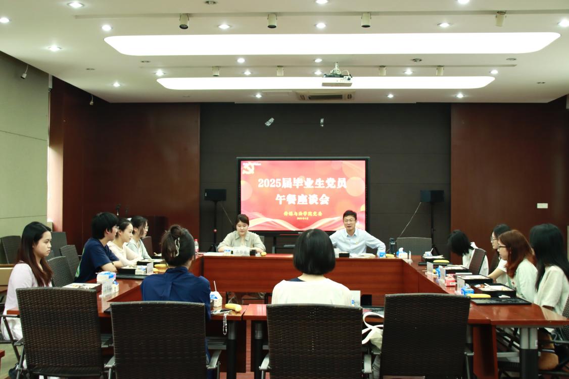 会议最后,部分毕业生党员代表前往SC101会议室参与“党员座谈午餐会”。轻松温馨的氛围中,党员们踊跃分享个人升学就业进展、成长感悟及对学院的建议。大家纷纷表示,感恩学院多年来的悉心培养,在党性锤炼、考研深造、求职就业等方面积累的宝贵经验将成为人生财富,并结合专业学习、校园生活等提出建设性意见,展现出强烈的爱校荣校情怀。