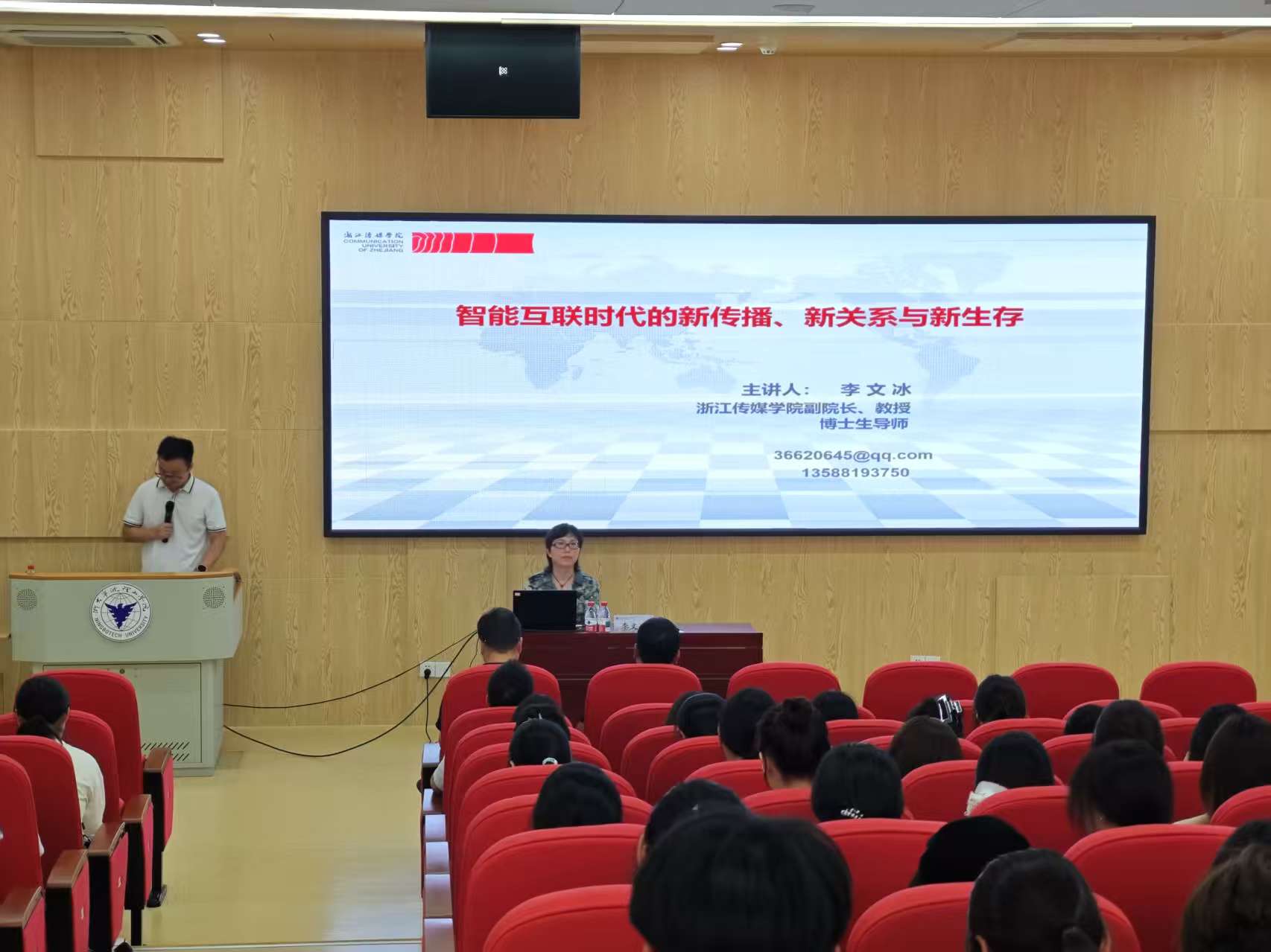 9月26日下午,浙江传媒学院副校长、党委委员,浙江省高等学校新闻传播学教学指导委员会主任委员李文冰教授应邀来校,为师生带来题为《智能互联时代的新传播、新关系与新生存》的前沿学术讲座。讲座由浙大宁波理工学院传媒与法学院执行院长李志主持,百余名师生到场聆听。