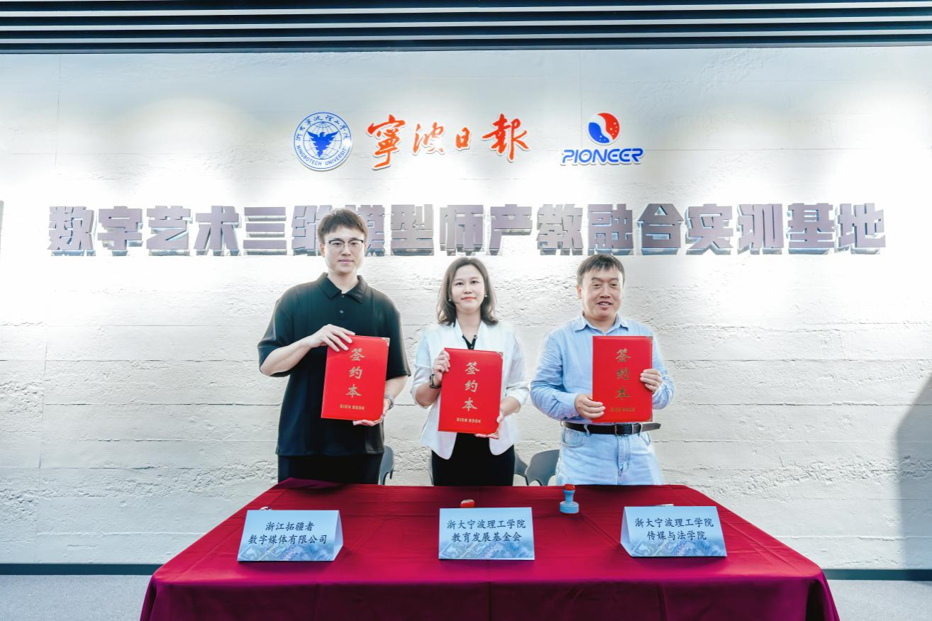 2025年10月20日,传媒与法学院在SC501举行“数字艺术三维模型师产教融合实训基地”启动仪式。该基地作为新闻与传播专硕学位点研究生联合培养体系的重要平台,由传媒与法学院牵头,联合宁波日报报业集团、浙江花果山文化传媒有限公司、浙江拓疆者数字媒体有限公司共建,旨在探索高校与行业协同育人新模式,推动产教融合实践教学体系建设。