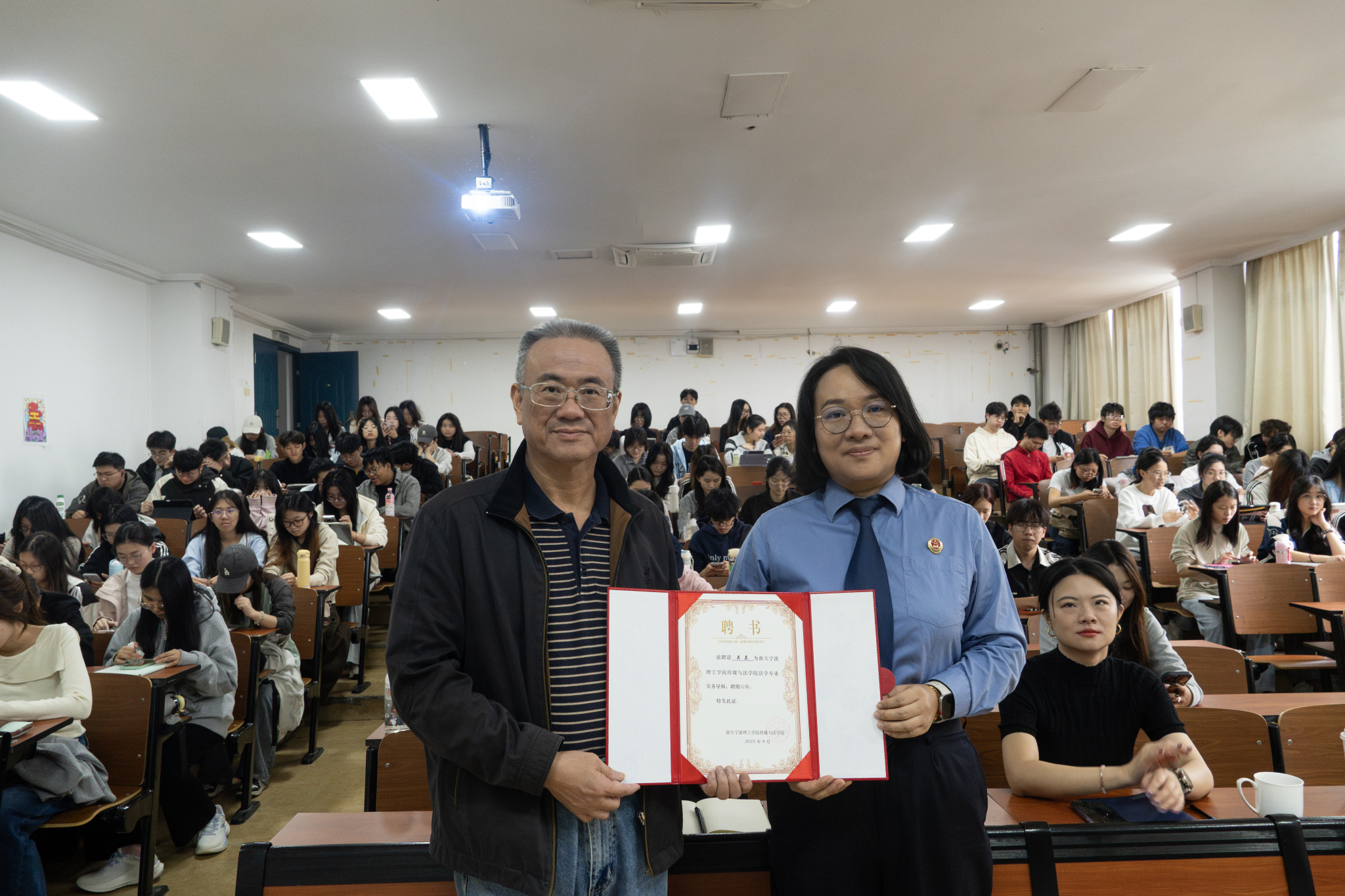 10月23日,传媒与法学院邀请到宁波市鄞州区人民检察院一级检察官关兰为同学们讲授刑事案件证据收集、事实认定及法律适用。我院启新特聘教授金彭年为关兰检察官颁发了本院实务导师聘任书。