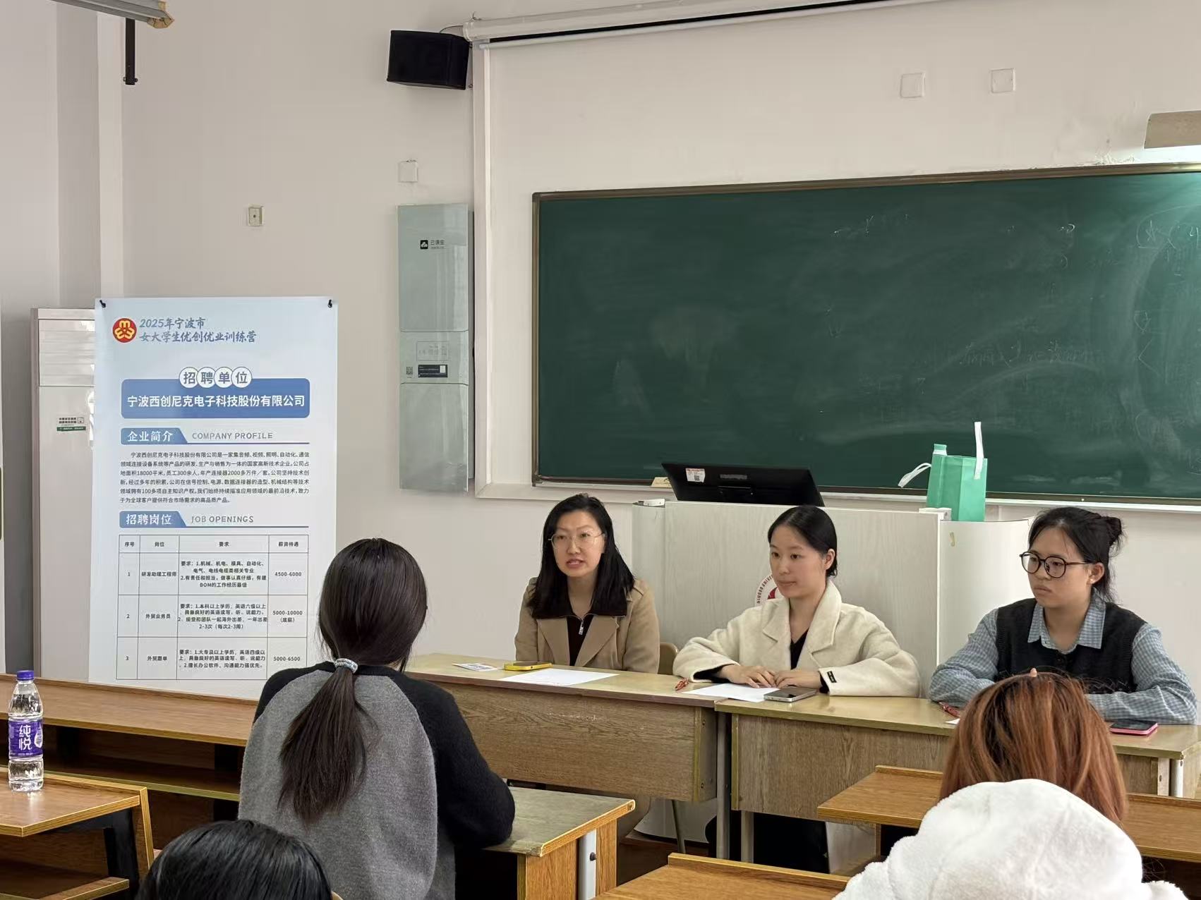 下午,训练营特别安排了企业HR模拟面试环节,邀请宁波西创尼克电子科技股份有限公司的人力资源专家担任面试官,围绕真实岗位需求进行情景模拟。同学们在仿真面试中锻炼应变能力与表达能力,收获宝贵的实战经验与针对性反馈。