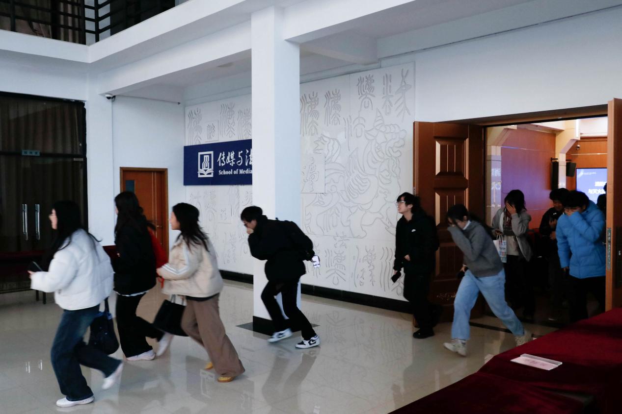 活动伊始,学院党委副书记、纪委书记邬旭东作动员讲话。他结合校园实际强调,消防安全绝不能仅停留在理论层面,许多潜在风险正隐藏在日常生活与学习的细节之中——无论是实验室设备操作、宿舍水电使用,还是楼道杂物堆放、安全通道管理,任何细微疏忽都可能引发严重事故。“演练是对生命的敬畏,警惕是对平安的守护。”他指出,安全意识的培养不仅关系个人安危,也直接影响校园整体稳定与秩序,必须常怀警惕、防微杜渐,将预防措施真正融入日常、落到实处。他还结合近期相关案例进一步说明,提醒师生火灾往往源于看似不起眼的疏忽,只有保持警觉、掌握正确方法,才能在关键时刻实现有效自救与互救。