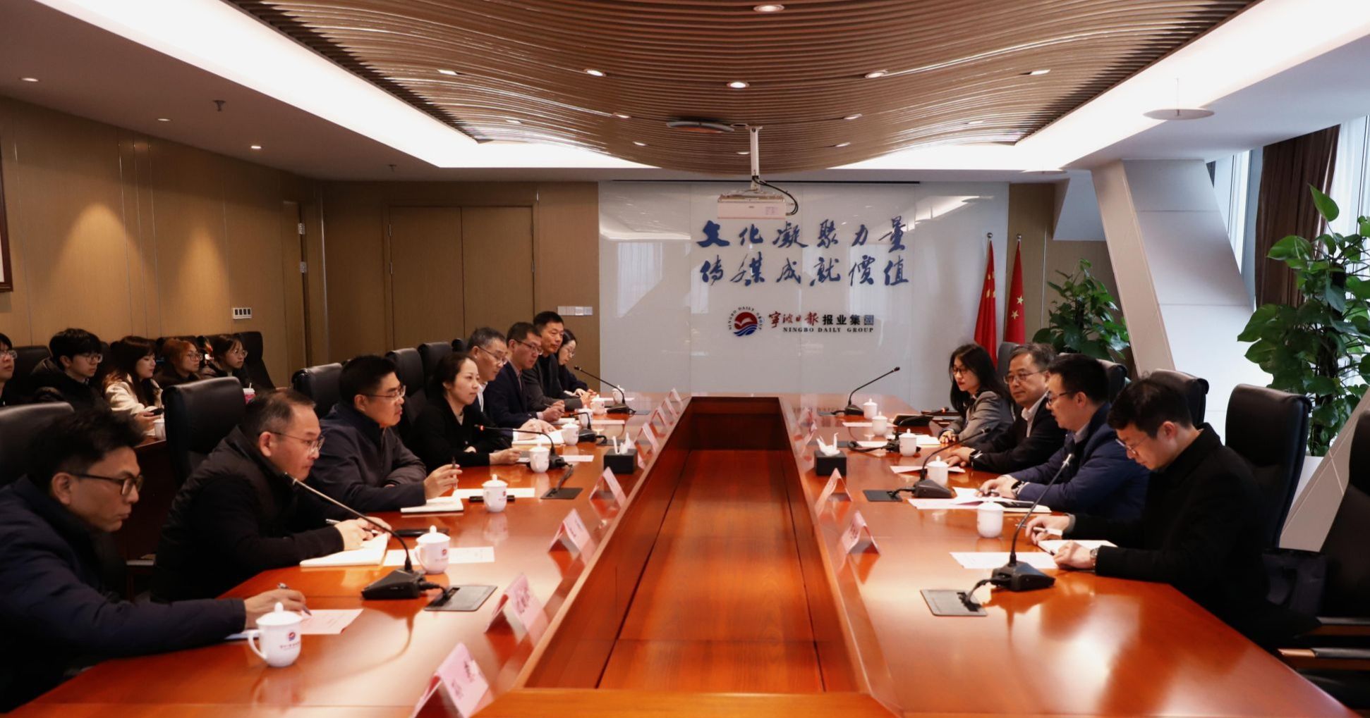 宁波市委宣传部副部长、市政府新闻办主任童丹霞,宁波日报报业集团党委副书记、总编辑朱安伟等热情接待,双方围绕人才共育、平台共建、事业共创等议题开展座谈交流。