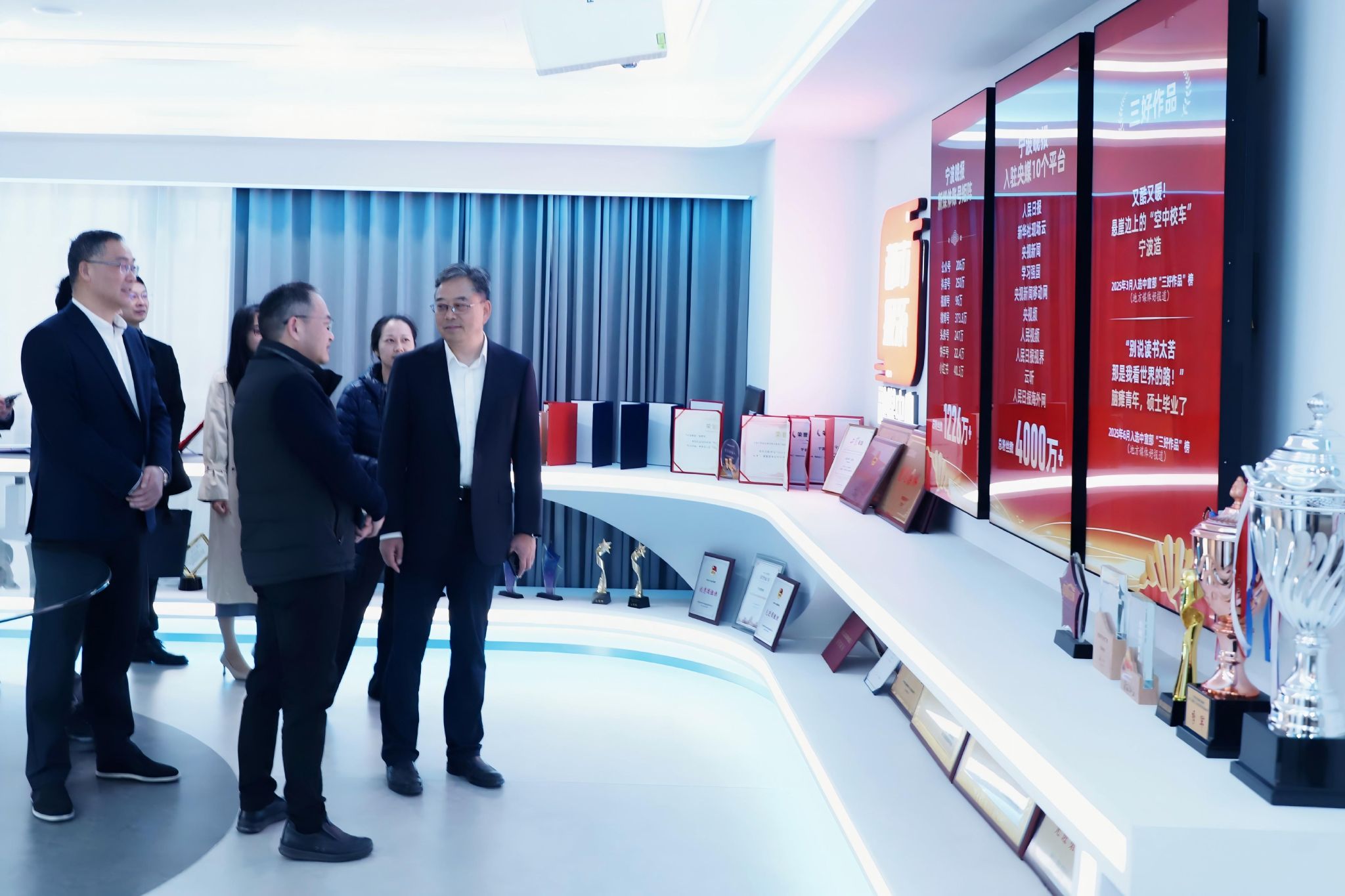 学校一行参观了甬派编辑部、集团国际传播中心,详细了解宁波日报报业集团新媒体研发、运营及国际传播中心建设等情况。