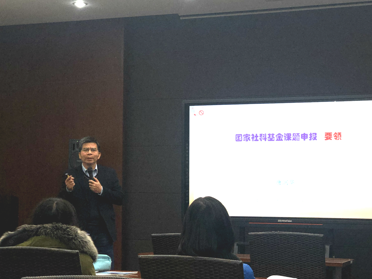 在讲座上,唐润华老师对社科基金的项目申报进行深度解析。他向参会教师分析了选题的选择来源,他以多年经验出发,分析了如何更好地确立选题,以及明确了选题在申报书中的重要性。之后,他列表总结了近几年来项目申报的话题占比,明确申报的高频关键词等。