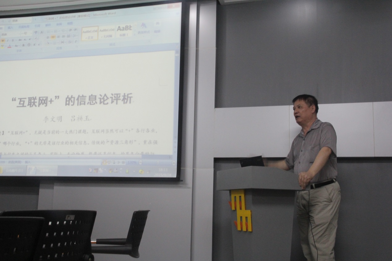 我院科研工作带头人李文明教授作为代表发言,结合自己所著论文《“互联网+”的信息论评析》与大家就自身在科学研究过程中的困难、经验作了分享,也对学院科研工作的开展提出许多建设性的意见和建议。此外,黄少华教授结合自己多年来科研工作上的经验提出,在科研工作上无论是专注某一学科或者综合多个学科进行研究,只要结合自身实际在科研工作上苦下功夫,最终在论文发表、科研成果、职称评定上一定会体现出一个良性循环。最后,何镇飚副院长从学院科研管理、课题选题与申报等方面阐述了科研在高校建设工作中的重要意义,并勉励广大青年教师要加强学习,在科研工作上苦下功夫,不断提升自身的研究能力。