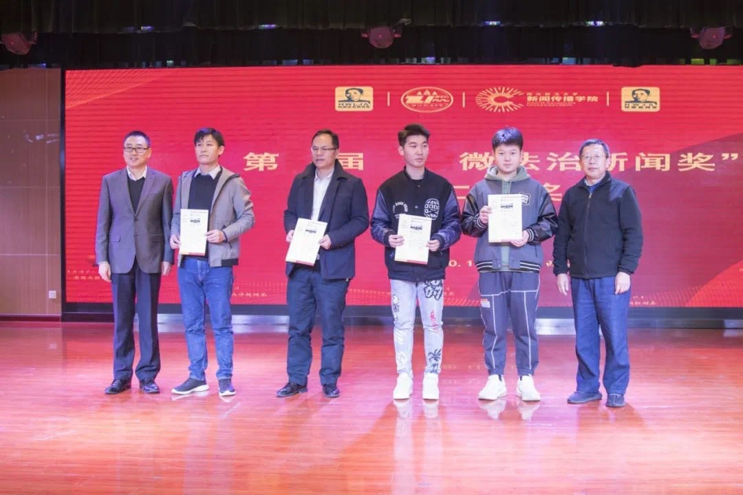 张文祥教授在论坛上发表题为《多元对话:突发公共卫生事件的信息传播治理——以新冠肺炎疫情为例》演讲。演讲内容经著名传播法学者魏永征教授、复旦大学文科资深教授童兵、华中科技大学国家传播战略研究院院长张昆教授等知名学者组成的评委评审,荣获第五届“何微法治新闻奖”一等奖。该报告回顾了新冠疫情中的信息传播与治理难题,指出疫情信息发布与对话缺失,谣言处置与舆情应对中存在的问题,一针见血地点明主流媒体的失声与缺位,呼吁建立多元主体的疫情信息预警和发布机制,让媒体在公共话语和社会治理中发挥重要作用。吴飞教授作为颁奖嘉宾出席了颁奖典礼。