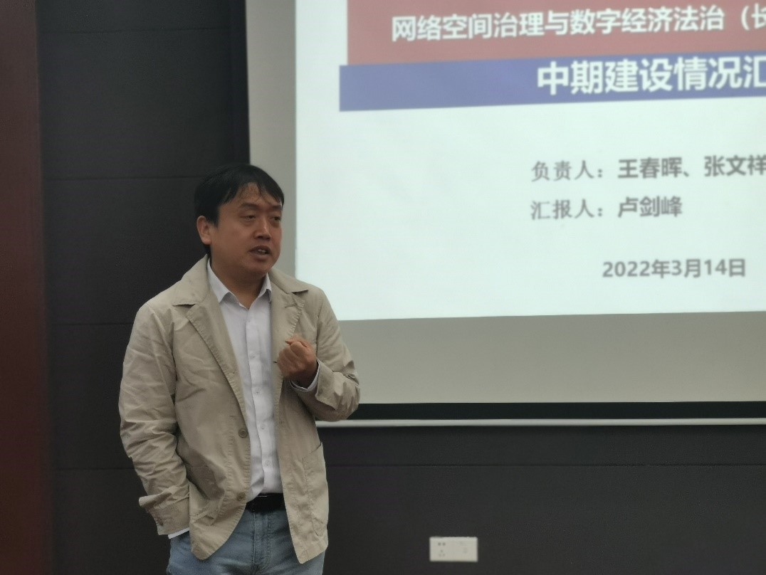 2022年3月14日上午,学校科研处处长胡长兴、副处长李义杰和李宁慧老师莅临传媒与法学院进行研究机构调研,听取中期绩效评估汇报。传媒与法学院副院长王军伟老师和三位研究机构汇报人卢剑锋老师、董玉鹏老师、张浩澜老师参与了此次调研。我院共有三个共建研究机构进行汇报,分别是网络空间治理与数字经济法治(长三角)研究基地、科技创新与知识产权研究中心和中澳社会计算与数据管理中心。