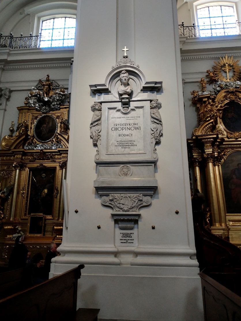 和我们上课教室一墙之隔的就是著名的圣十字教堂,盛放肖邦心脏的地方。为了在二战中保护这颗心脏,曾经有人付出了生命。这颗心脏最终被转出国门,待战后圣十字教堂复原一新后才归回原位。