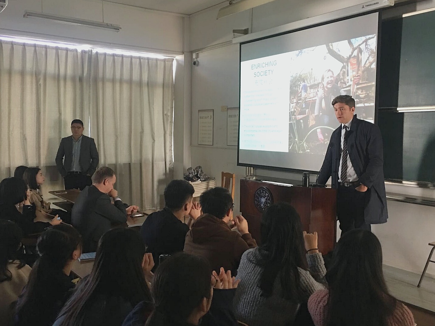 宣讲会上,英国诺丁汉特伦特大学代表Andrew Plant向同学们介绍了诺丁汉特伦特大学的专业情况、就业情况以及出国交流学习具体事项等,让同学们更加了解了这个学校,这给予有意向出国交流学习的学生很大的帮助。会上,不少同学积极提问,对于出国学习的英语要求和专业师资比较关注。