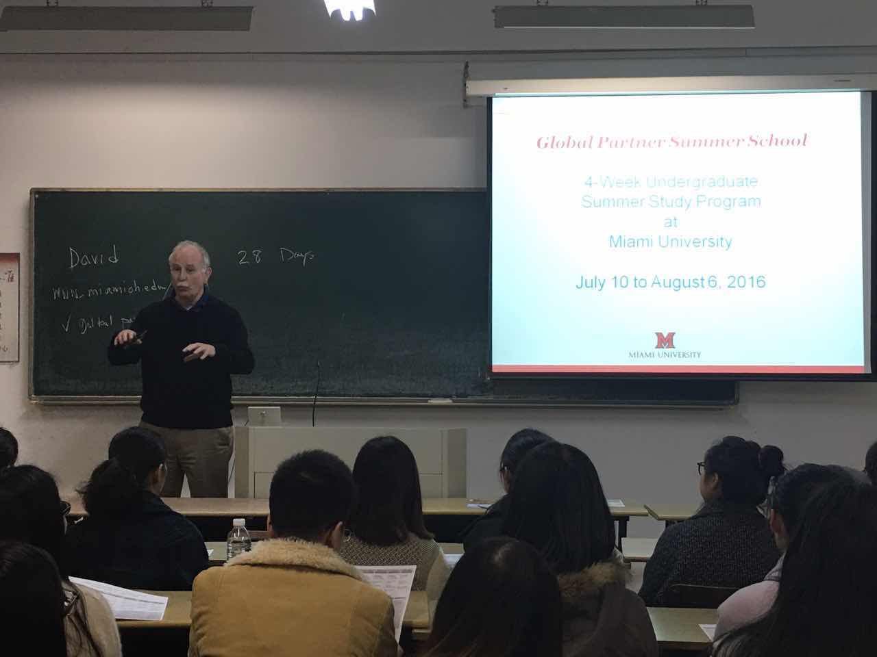 3月21日,美国俄亥俄迈阿密大学(Miami University, Ohio)David Keitges教授访问我校传媒与设计学院,并针对2016年国际暑期学校项目对学生进行宣讲,反响热烈。